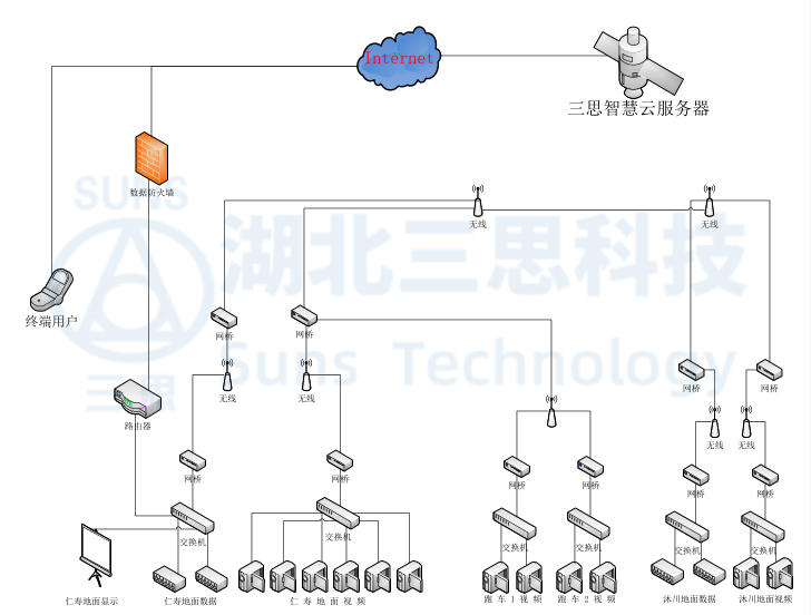 ▲纜索吊監(jiān)控系統(tǒng)網(wǎng)絡拓撲圖