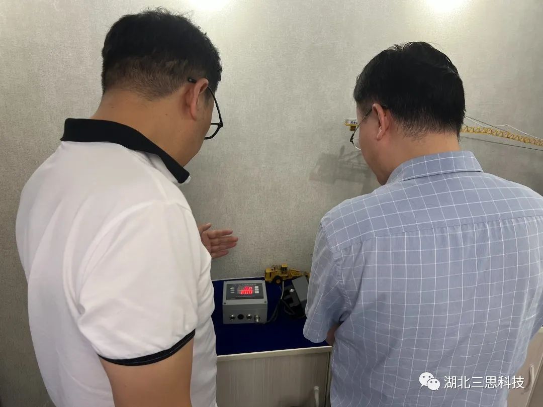 ▲展廳內(nèi),鄒總現(xiàn)場(chǎng)為張副局長(zhǎng)演示并講解由湖北三思科技自主研發(fā)的起重機(jī)安全監(jiān)控系統(tǒng)