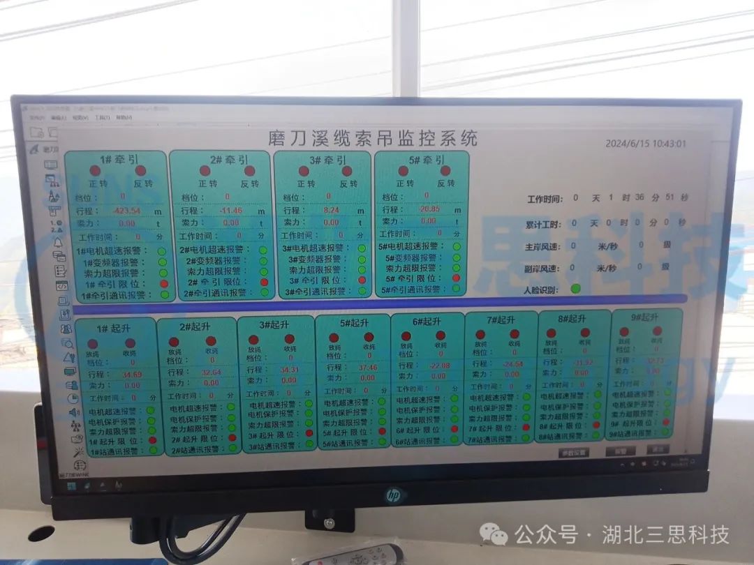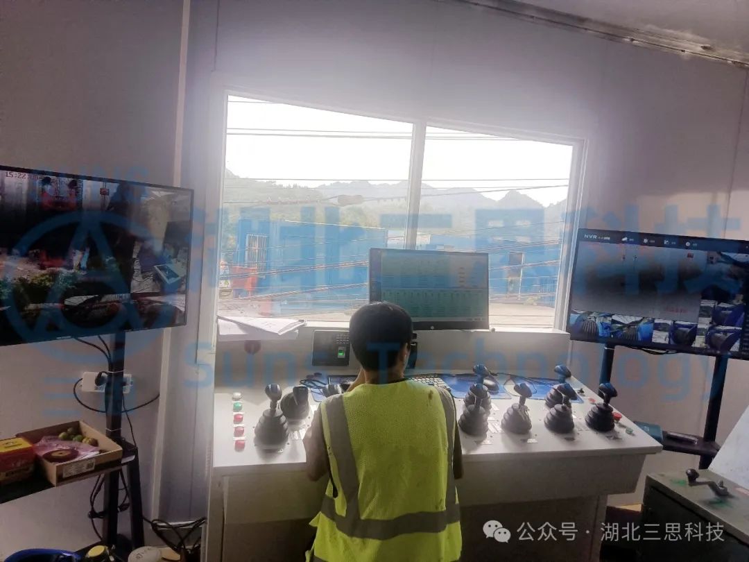 該橋江口、龍缸兩岸拱座均背靠在陡峭的山體,垂直于磨刀溪河施工現場,有滑坡危巖、巖石裂隙發(fā)育,現場施工場地狹小、危險系數高、施工難度大。因此,本項目纜索吊機采用了由湖北三思科技自主研發(fā)的纜索吊機集中控制管理系統,使設備的操作方式由傳統的“一人控制一機”升級為“一人控制多機”,同時設備在運行過程中既可多機聯動,亦可單機獨動,為智能化安全管理提供有效保障。